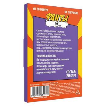 Всё, что требуется, это открыть набор фантов и по очереди выполнять задания с карточек. В игре нет победителей, ведь о каком выигрыше может идти речь, когда вас и партнёра закружило в вихре удовольствия? Окунитесь в омут страсти вместе с этими волнующими фантами.