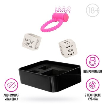 Как пользоваться кубиками? Очень просто! Всего в комплекте их два: один подскажет, как заняться сексом (в какой позе), а второй — где именно нужно это сделать. Бросайте кубики, получайте задание и наслаждайтесь друг другом! В комплекте также есть виброкольцо, которое можно использовать во время игр.