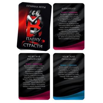 Вытягивайте карточки, перевоплощайтесь и наслаждайтесь друг другом. На одной стороне каждой из них вы найдёте роль для девушки и описание её действий, на другой — то же самое для мужчины. Ознакомьтесь со всей информацией и воплотите сценарий в реальность.